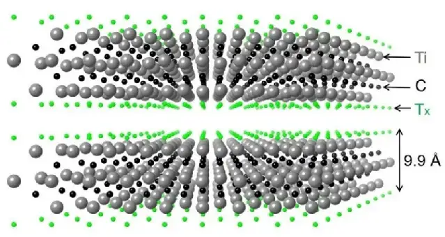 因此,在氫氟酸溶液中,MAX相的A原子層易于被刻蝕,剩下M與X原子層形成二維Mn+1Xn原子晶體,為了強調(diào)它們是由MAX相剝離而來,并具有與石墨烯(Graphene)類似的二維結構,將它們統(tǒng)一命名為MXene。根據(jù)各種過渡金屬(如Ti,Mo,V,Cr及其與C和N合金)的組合,材料科學家已經(jīng)確定或預測了成百上千種不同MXenes的穩(wěn)定相。