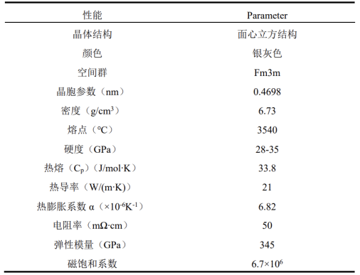最后,ZrC的基本性質(zhì)表可看下表: