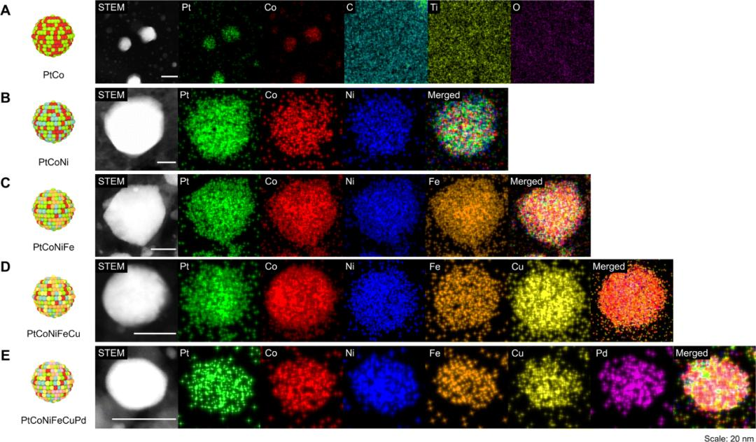3. 多元素合金合成: 成功合成了二元、三元、四元、五元和六元金屬合金納米顆粒,為MXene復(fù)合材料的性能調(diào)控提供了更多可能性。