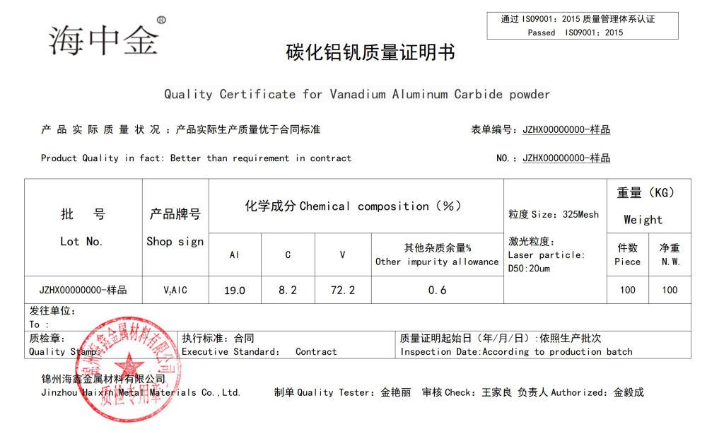 產(chǎn)品名稱(chēng):碳化鋁釩(V2AlC)