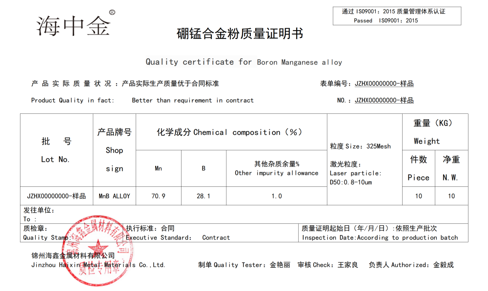 產(chǎn)品名稱:硼錳合金(MnB2)