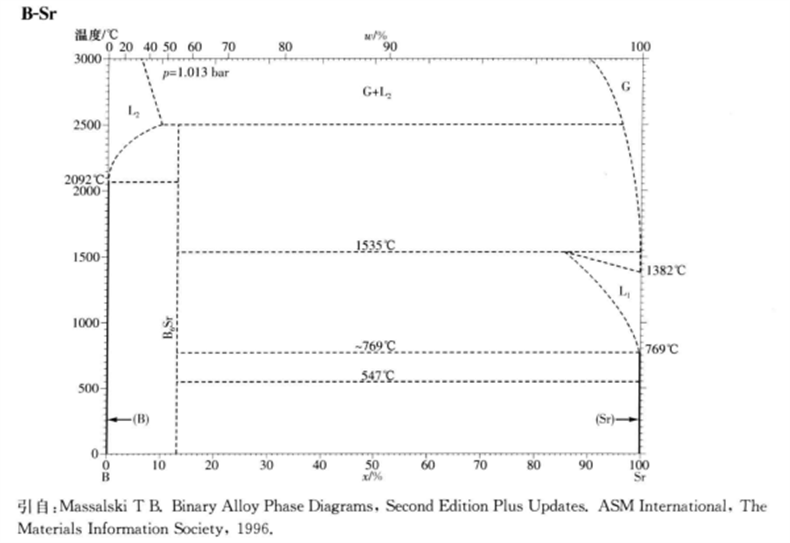 1)將金屬Sr和計算量的無定形B混勻加熱至紅熱,兩單質(zhì)相化合即得。