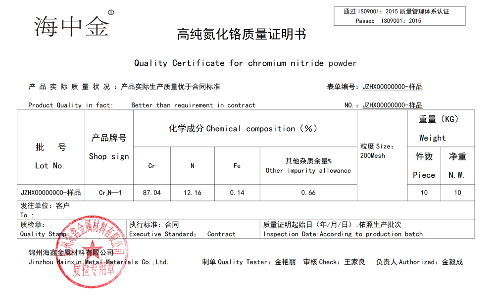 產(chǎn)品名稱:氮化鉻(CrN)