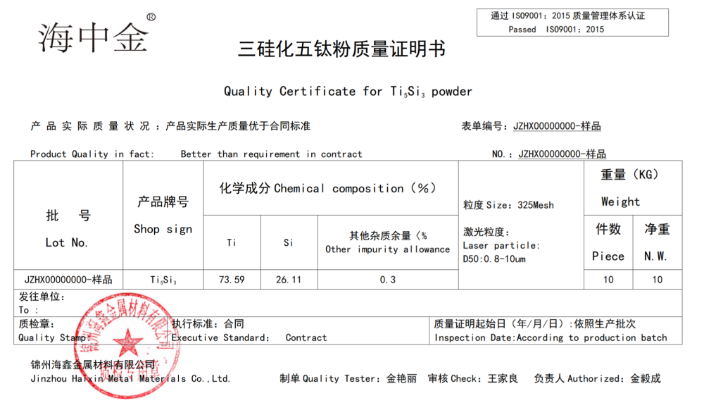 產(chǎn)品名稱:三硅化五鈦(Ti5Si3)