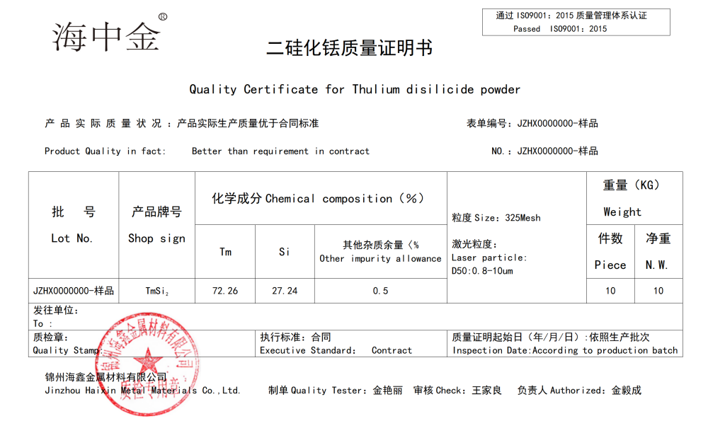 產(chǎn)品名稱:二硅化銩(TmSi2